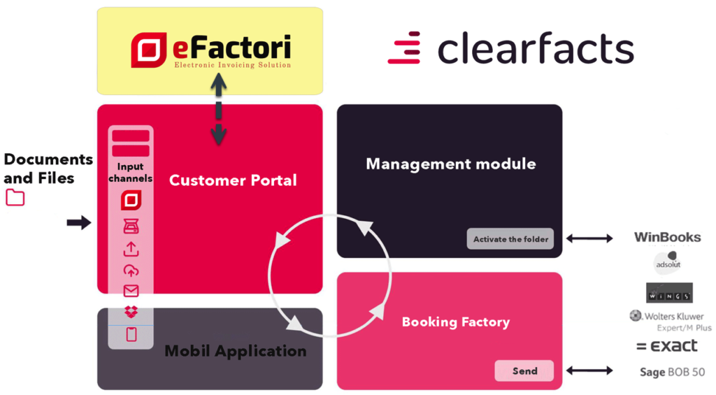 Aan de kant van de accountant wordt ClearFacts gepositioneerd als een revolutionair platform voor documentbeheer. Het stelt accountants in staat om verkoopdocumenten rechtstreeks op te halen uit onze eFactori elektronische factuuroplossing, deze te analyseren en eenvoudig te integreren in hun boekhoudsysteem. Deze automatisering elimineert mogelijke fouten, waardoor accountants zich kunnen richten op taken met een hogere toegevoegde waarde en hun klanten een snellere, nauwkeurigere service kunnen bieden.